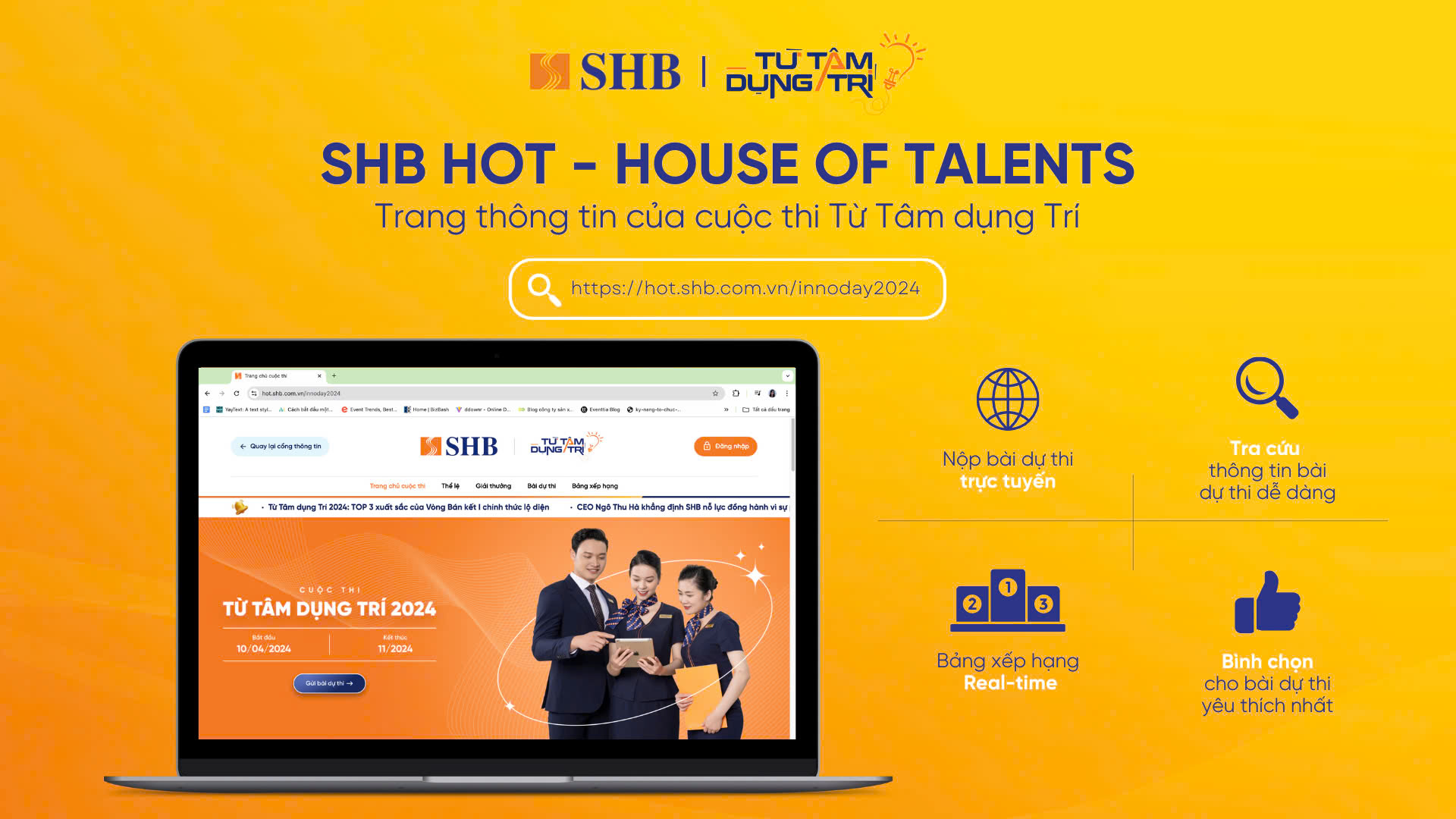 Đồng thời, Ban tổ chức chính thức nhận bài dự thi thông qua SHB HOT - SHB House of Talents - Trang tin chính thức của chương trình Từ Tâm dụng Trí và đăng nhập thông qua tài khoản Email của hệ thống nội bộ.
